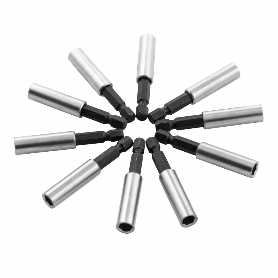 Магнитный адаптер Matrix арт. 11398 предназначен для установки бит с шестигранным хвостовиком на шуруповерты и дрели. Битодержатель необходим тем, кто часто сталкивается с необходимостью закручивать различные шурупы, строителям, механикам, сборщикам мебели и техники. Магнитное крепление обеспечивает надежную фиксацию биты, а также ее быструю замену.Адаптер прочен и долговечен, поскольку изготовлен из высококачественной углеродистой стали и имеет простую конструкцию, а хромирование защищает его от коррозии. Матерчатый подвес будет полезен на производствах и в мастерских, работники смогут брать себе битодержатели, а после смены возвращать их на место.В упаковке 10 штук.