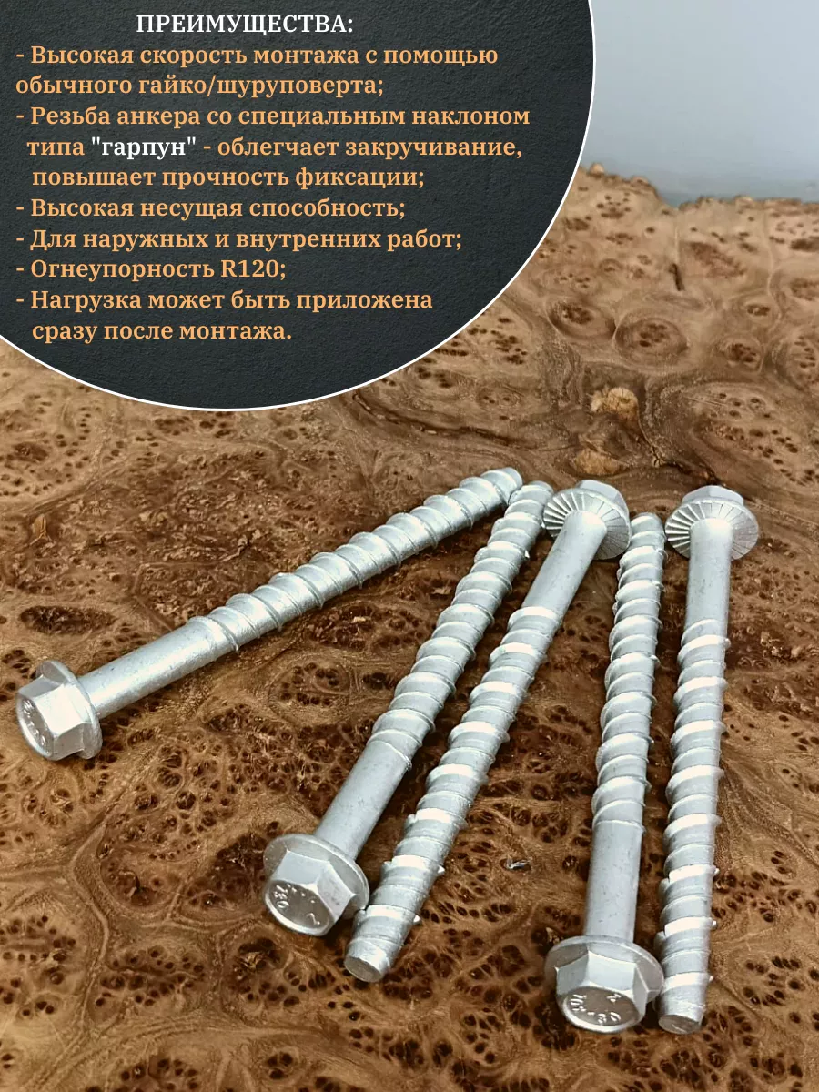 | Анкер-шуруп по бетону М12х130 мм CON-R , 4 шт. | аш12130 | 1 шт. |