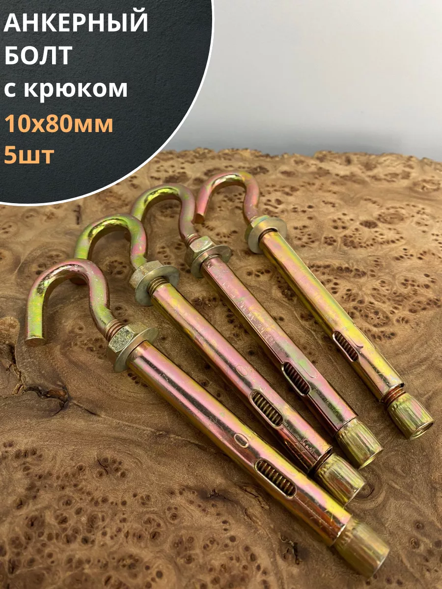Анкерный болт с крюком 10х80 мм, 5 шт.
