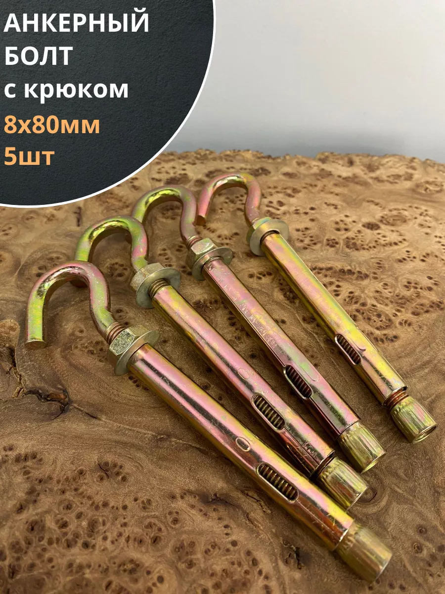 Анкерный болт с крюком, 5 шт.