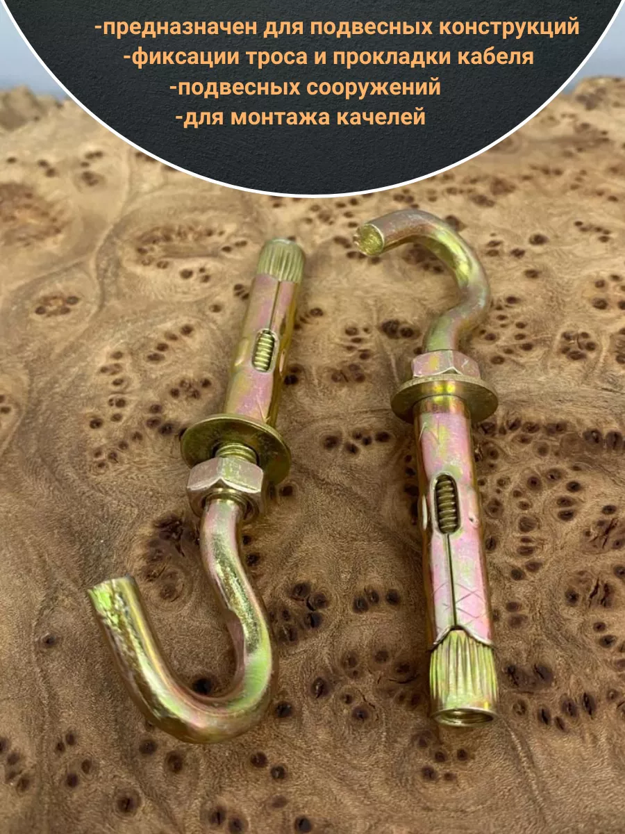 Анкерный болт с крюком 8х60 мм, 5 шт.