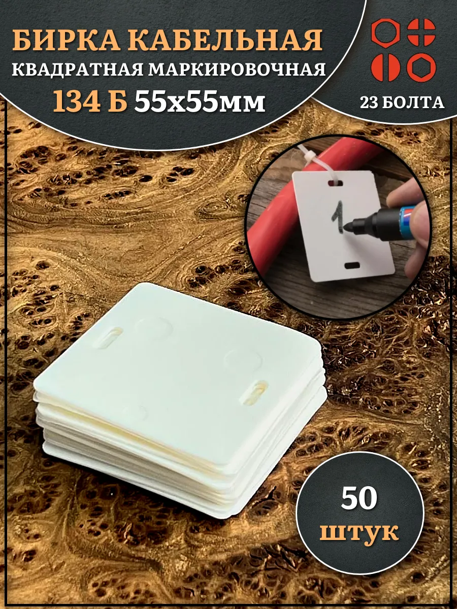 Бирка кабельная квадратная маркировочная 134 Б (55х55 мм), 50 шт.
