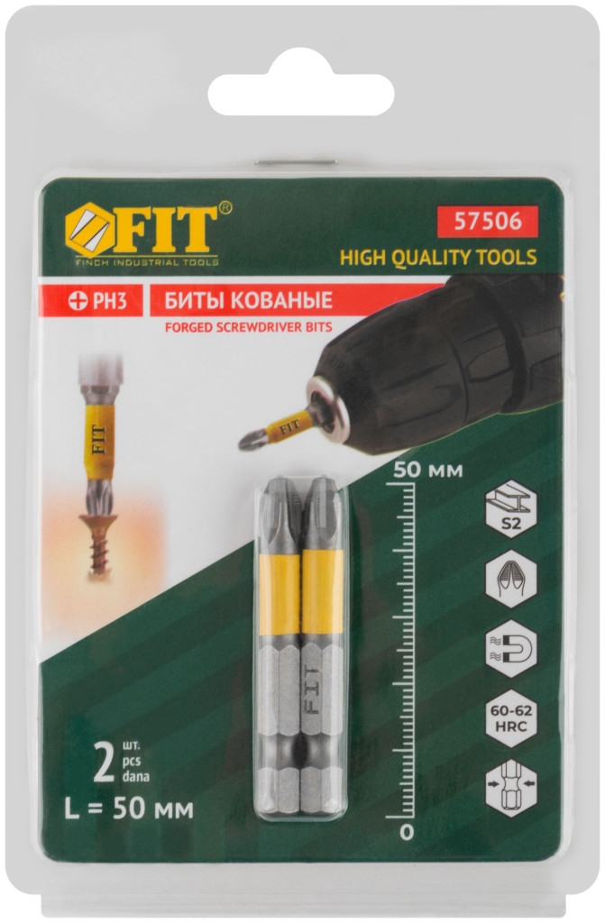 Биты кованые, сталь S2, одностор. 50 мм РН3, 2шт. Профи, блистер