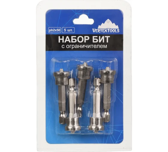 Набор бит с ограничителем Vertextools ОГ-PH2-50 предназначен для монтажа/демонтажа крепежных изделий, имеющих шлиц PH2, с помощью ручного инструмента или шуруповерта.