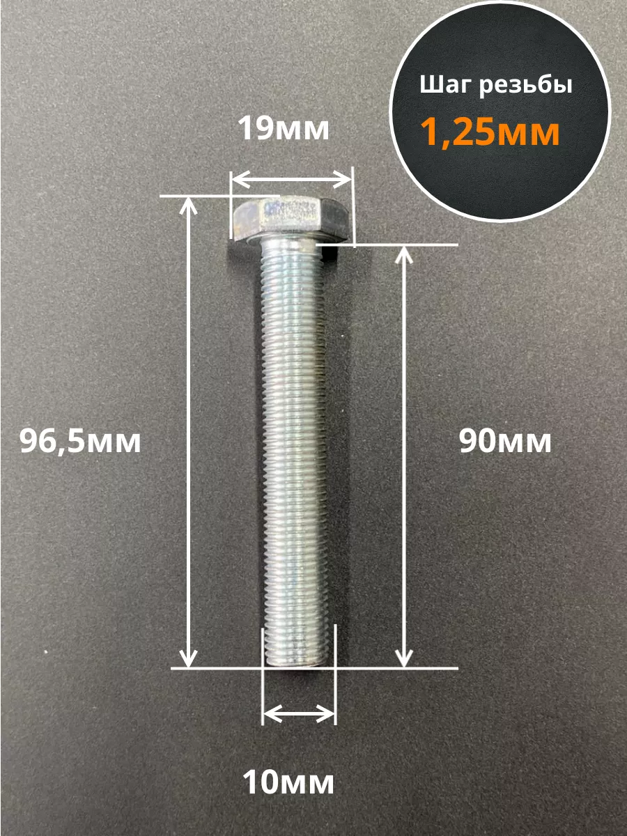 Болт М10х1,25х90 мелкая резьба к.п.10.9 ОЦ DIN961, 10 шт.