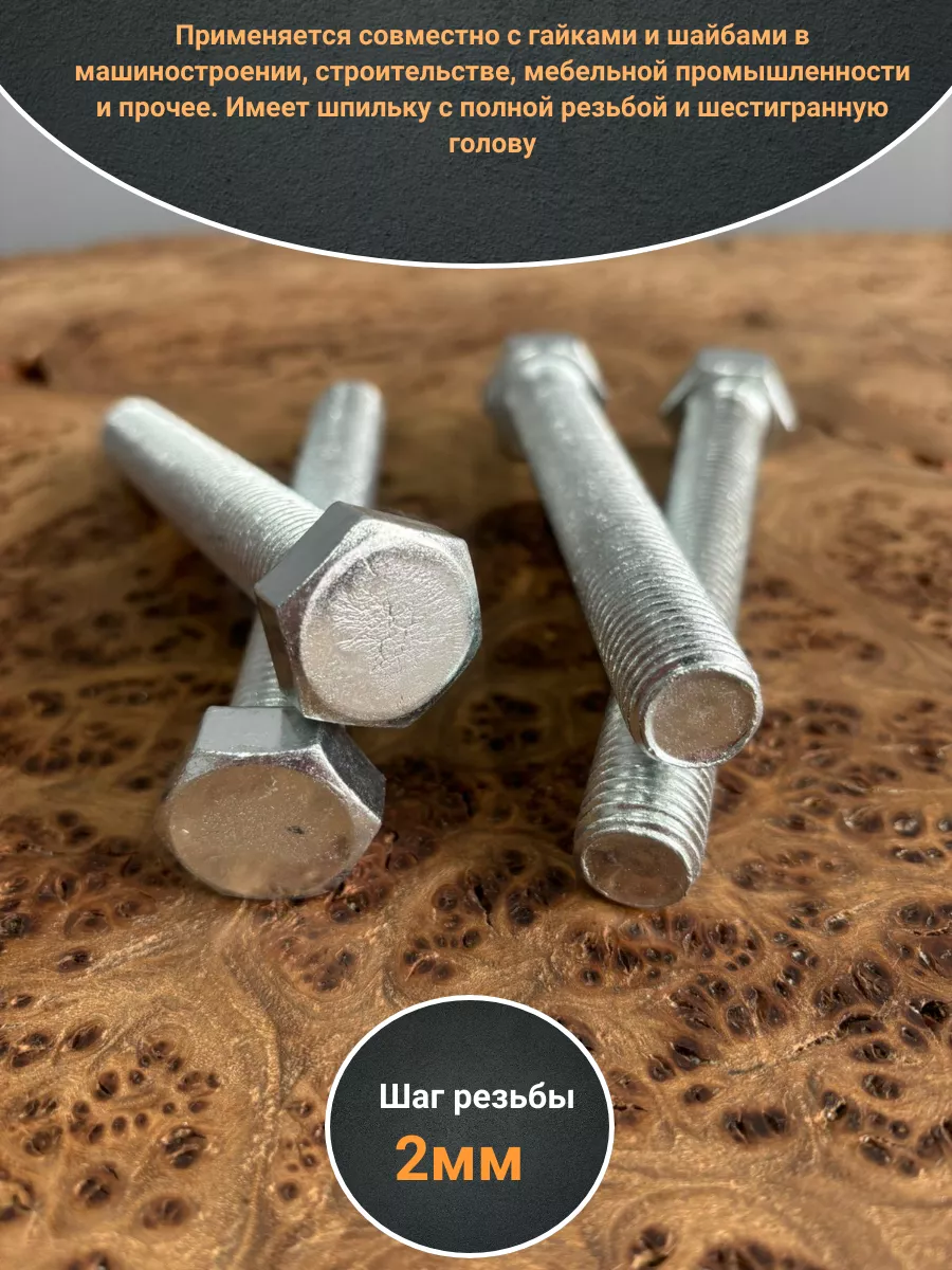 Имеет шпильку с полной резьбой и шестигранную голову. Длина болта определяется по длине шпильке. Стандартный класс прочности для болтов от 4,8 до 5,8. Самый распространенный вид болтов применяется совместно с гайками и шайбами.