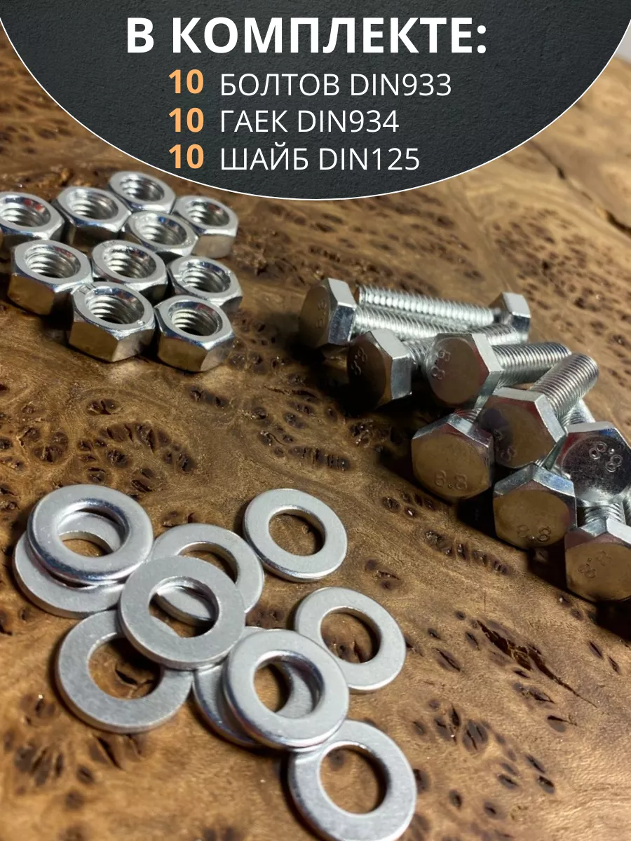 Болт 8х30 мм с гайкой и шайбой ОЦ DIN933 к.п.8.8 (10 шт.)
