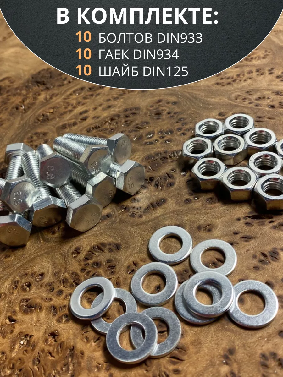 Болт 8х35 мм с гайкой и шайбой ОЦ DIN933 к.п.8.8 (10 шт.)