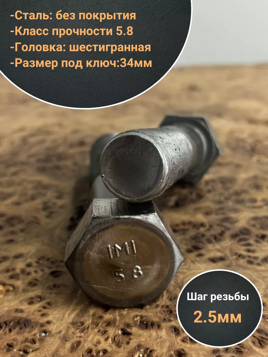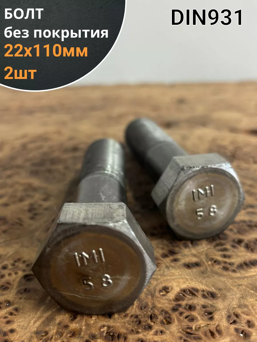 Болт без покрытия 22х110 мм DIN931, 2 шт.