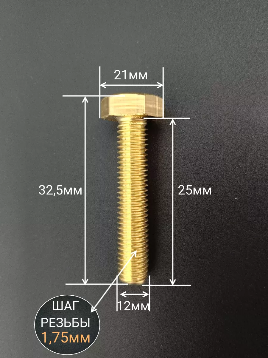 Болт латунный М12х25 DIN933,10 шт