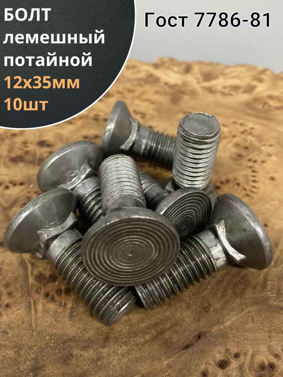 Болт лемешный М12х35 высокопрочный потайной ГОСТ 7786,10 шт