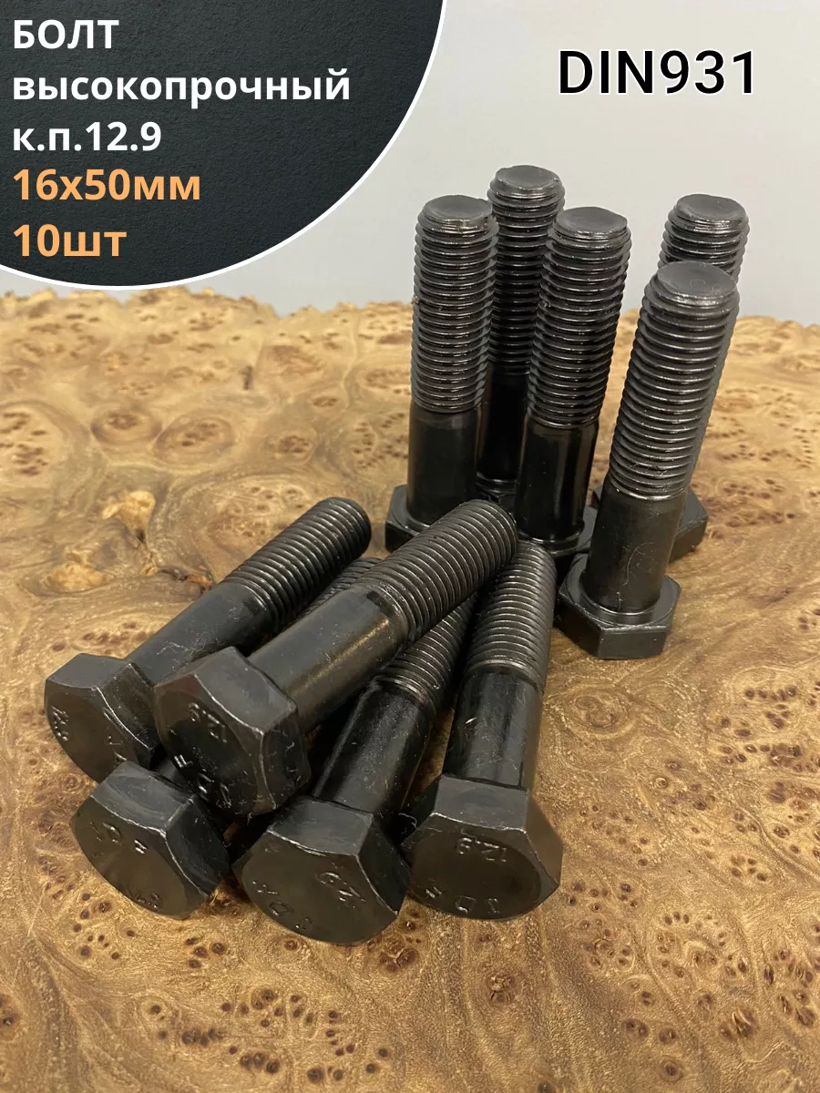 Болт М16х50 мм, DIN931, высокопрочный 12.9 , 10шт.