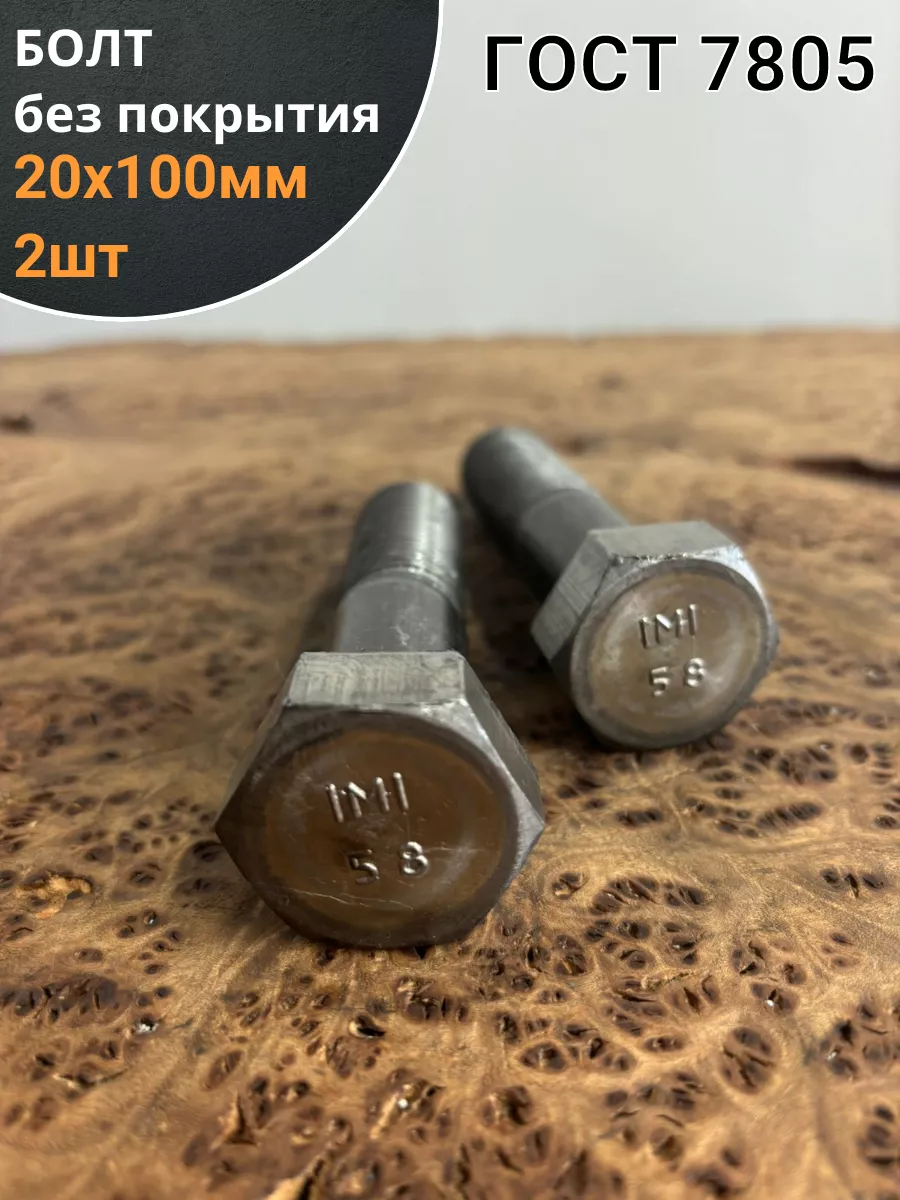 Болт без покрытия 20х100 мм ГОСТ 7805, 2 шт.
