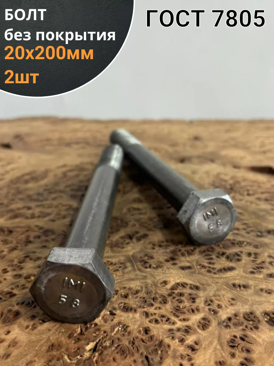 Болт без покрытия 20х200 мм ГОСТ 7805, 2 шт.