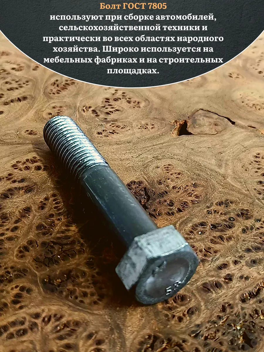Болт без покрытия 20х65 мм ГОСТ 7805, 2 шт.