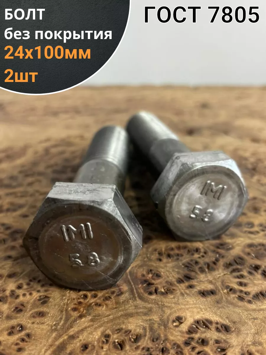 Болт без покрытия 24х100 мм ГОСТ 7805, 2 шт.