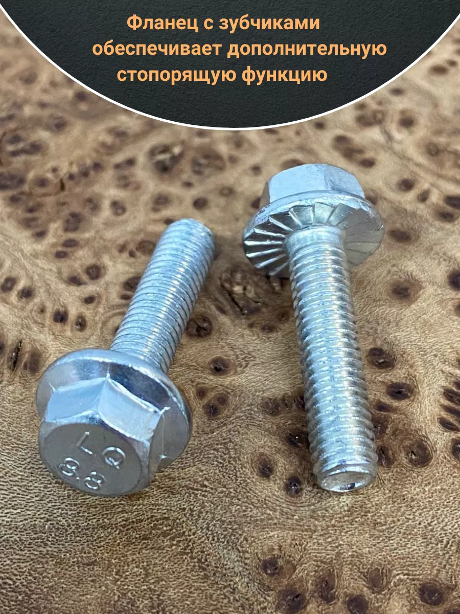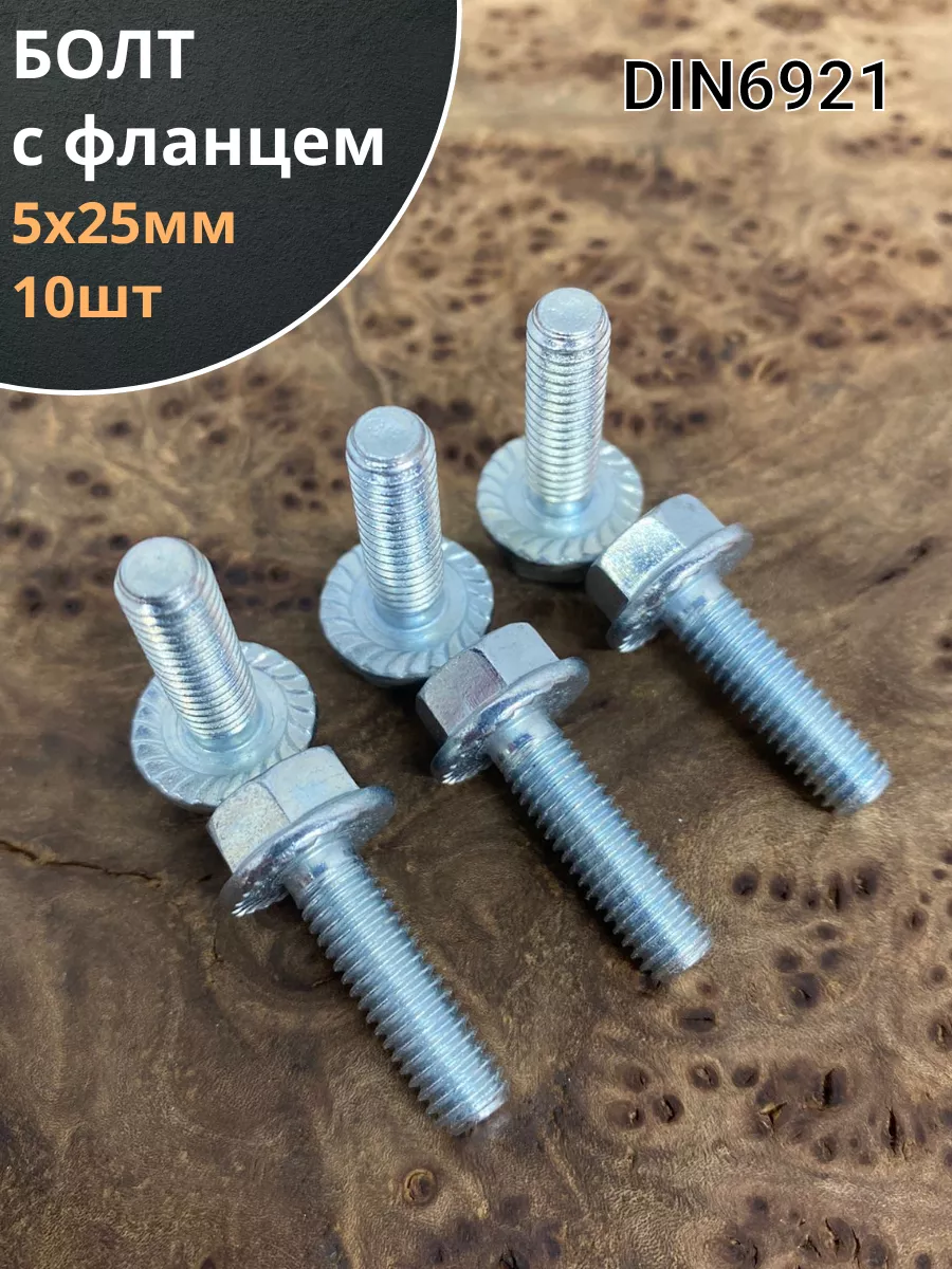 Болт с шестигранной головкой и фланцем используют как крепление различных деталей или конструкций. Данный болт используют только вместе с шайбой или гайкой. Болт DIN 6921 изготавливают из оцинкованной стали. Модель имеет как резьбу на 4/5 длине стержня, так и полную резьбу, а так же плоский фланец и шестигранную головку. Данная модель пользуется популярностью на строительно-монтажных площадках, установка болта не требует использование отдельной шайбы
