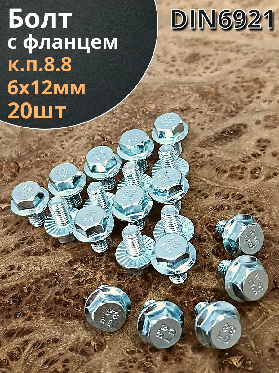 Болт М6х12 с фланцем к.п.8.8 ОЦ DIN6921, (20 шт.)