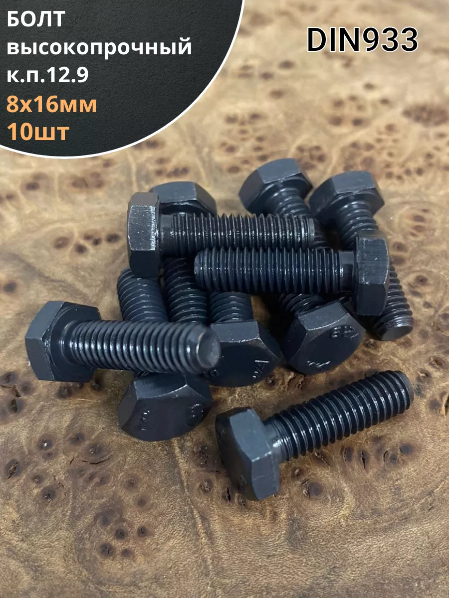 Болт М8х16 мм, DIN933, высокопрочный к.п. 12.9, 10шт.