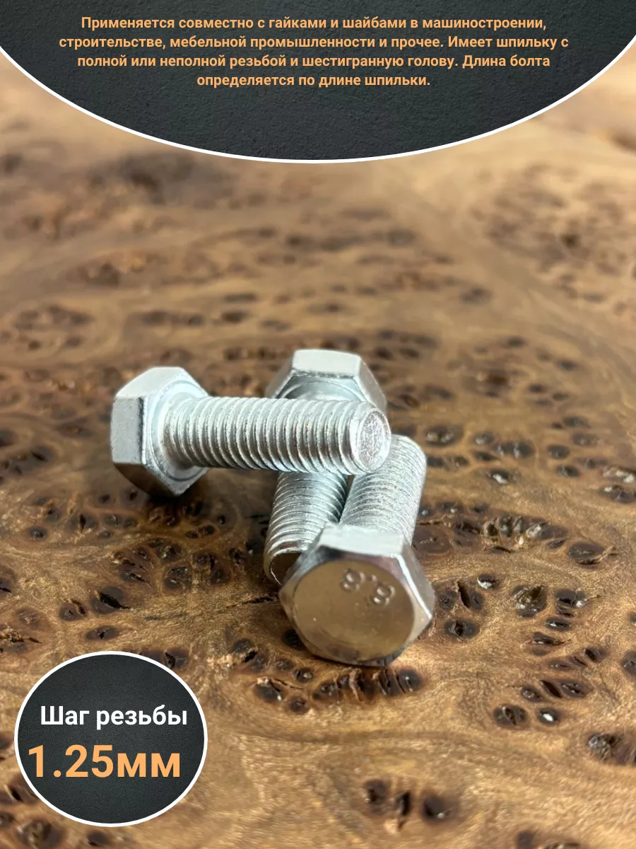 Применяется совместно с гайками и шайбами в машиностроении, строительстве, мебельной промышленности и прочее. Имеет шпильку с полной или неполной резьбой и шестигранную голову. Длина болта определяется по длине шпильки.