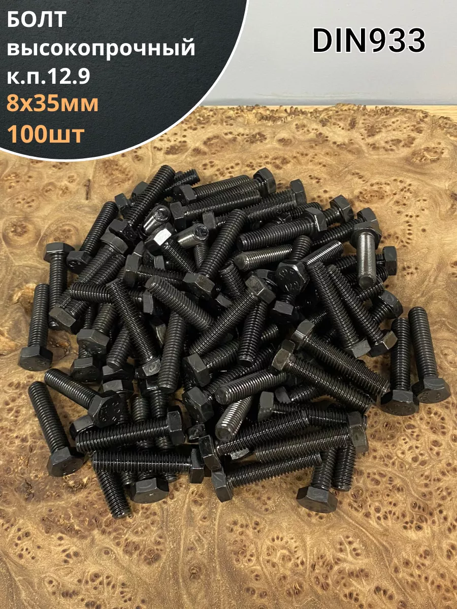 | Болт М8х35 мм, DIN933, высокопрочный к.п. 12.9, 100шт. | 11255 | 1 шт. |