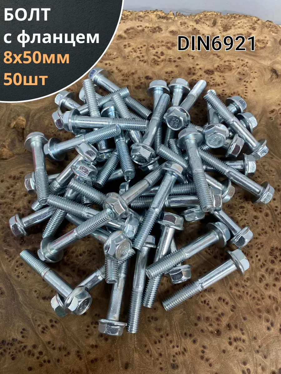 | Болт М8х50 с фланцем к.п.8.8 ОЦ DIN6921, (50 шт.) | 8869210850ф50 | 1 шт. |