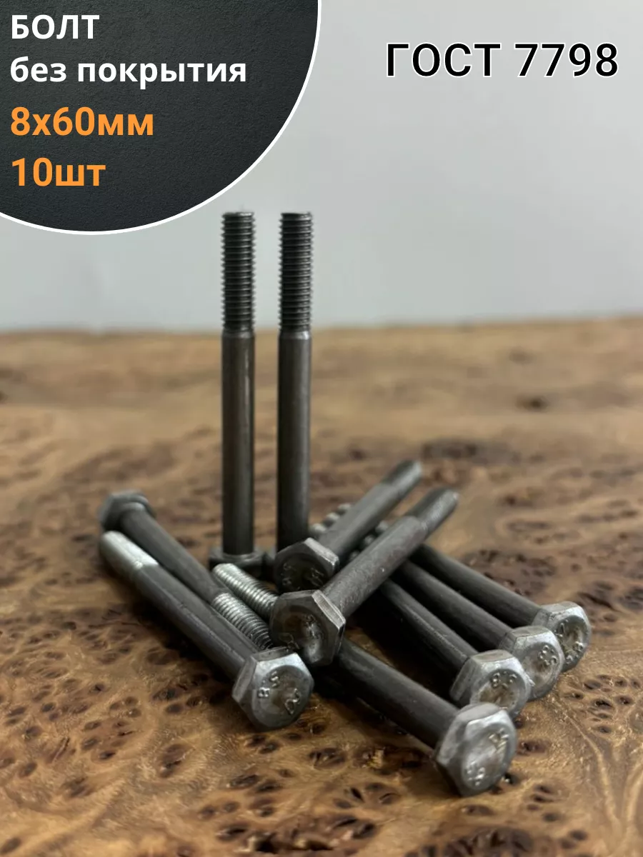 Болт без покрытия 8х60 мм ГОСТ 7798, 10 шт.