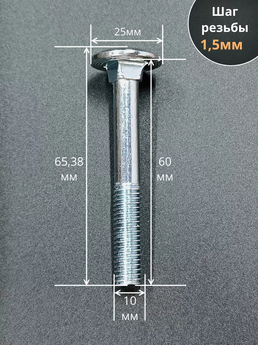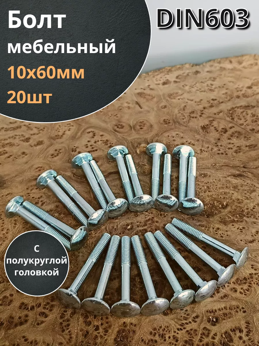 Болт мебельный М10х60 полукруглая головка ОЦ DIN 603,20 шт.