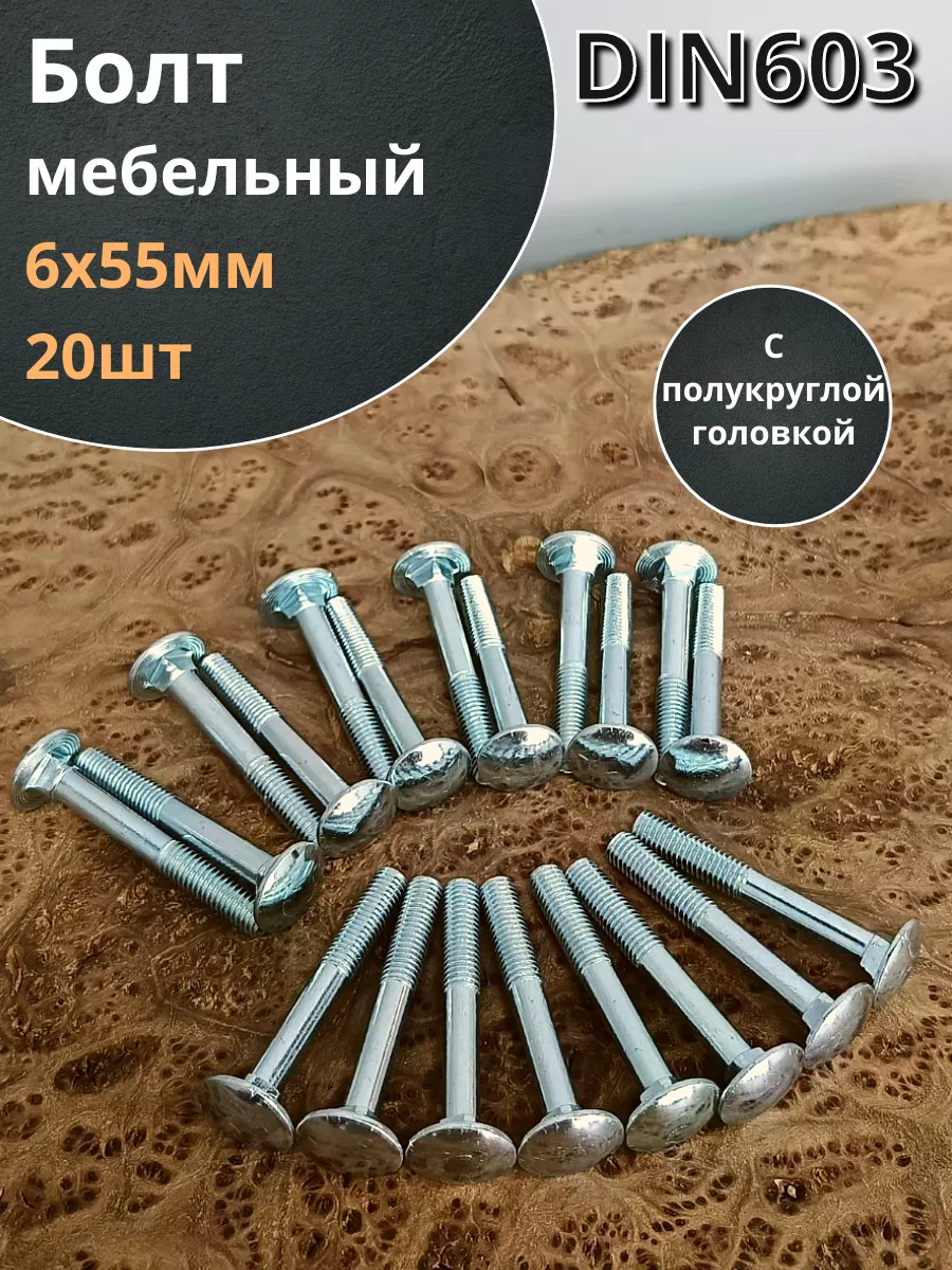 Болт мебельный М6х55 полукруглая головка ОЦ DIN 603,20 шт.
