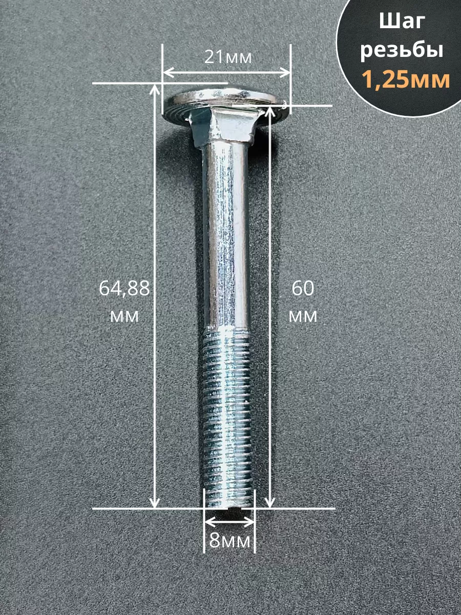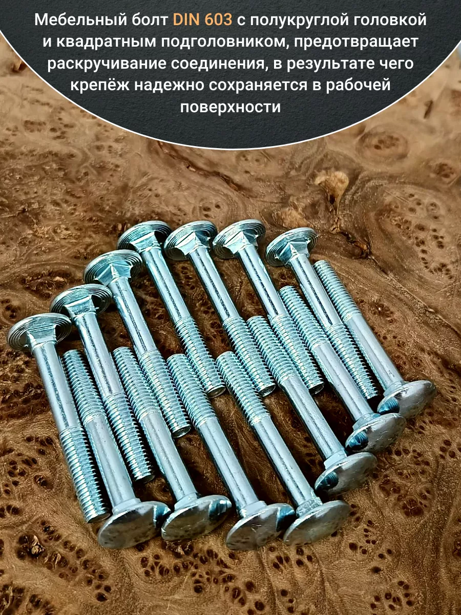 Болт мебельный М8х60 полукруглая головка ОЦ DIN 603,20 шт.