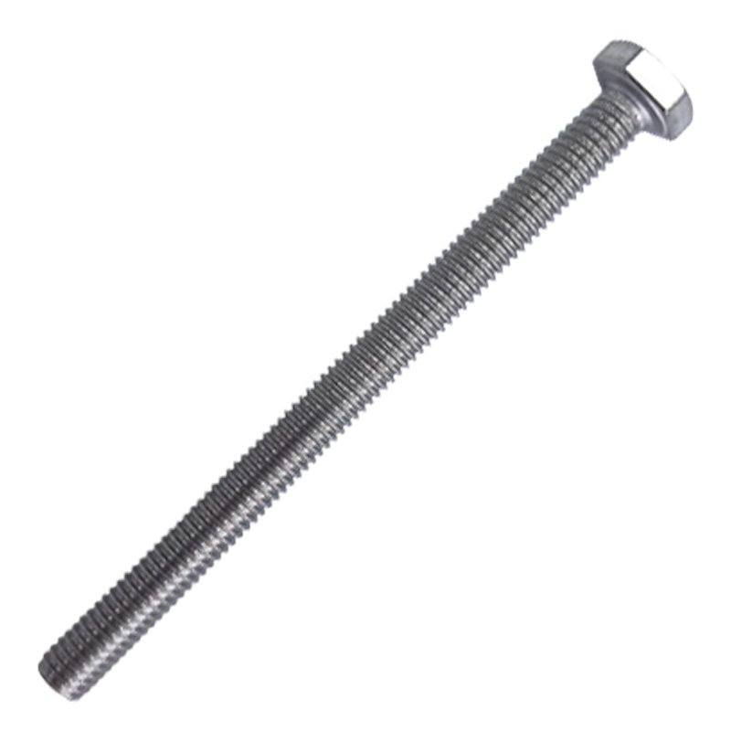 Материалом для болта служит нержавеющая сталь класса A2. У изделия есть цилиндрический стержень c полной резьбой и шестигранная головка. Шляпка передает крутящий момент от ключа к крепежу при завинчивании. Для создания прочных резьбовых соединений крепеж используется в комбинации с шайбой и гайкой или завинчивается в отверстия с нарезанной резьбой. Чтобы исключить электрохимическую коррозию, шайбы с гайкой делаются из коррозионно-устойчивой стали либо нейтральных полимерных материалов.