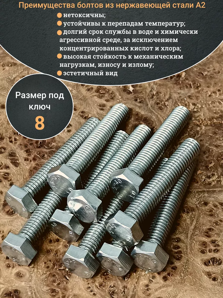 Нержавеющая сталь данной марки повышает прочность болта, который выдерживает динамические усилия и вибрацию. Изделие монтируют в помещениях и вне их. Крепеж имеет практически неограниченный ресурс работы, на который не влияет воздействие воды и изменений температуры воздуха.