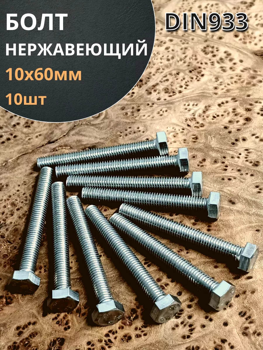 Болт нержавеющий 10х60 мм DIN933 10шт