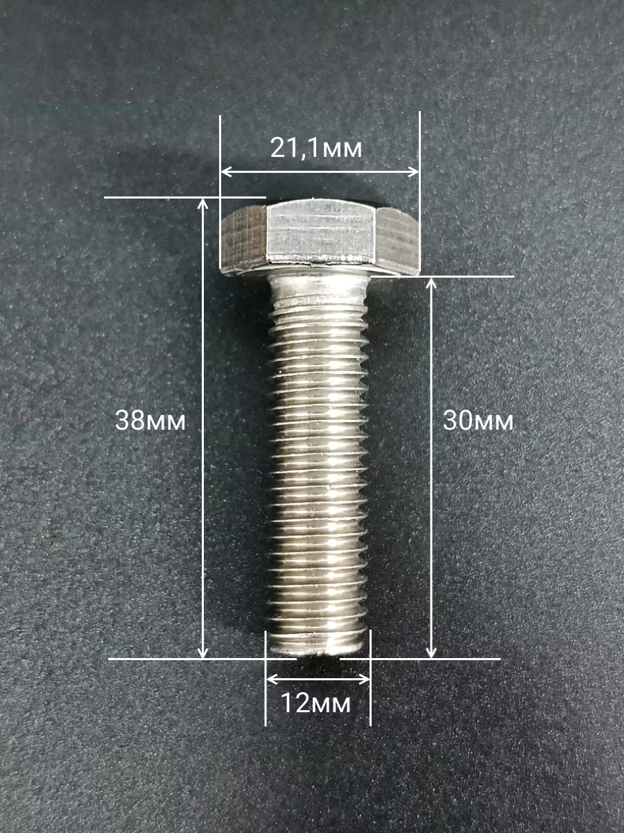 Имеет шпильку с полной резьбой и шестигранную голову. Длина болта определяется по длине шпильке. Стандартный класс прочности для болтов от 4,8 до 5,8. Самый распространенный вид болтов применяется совместно с гайками и шайбами.