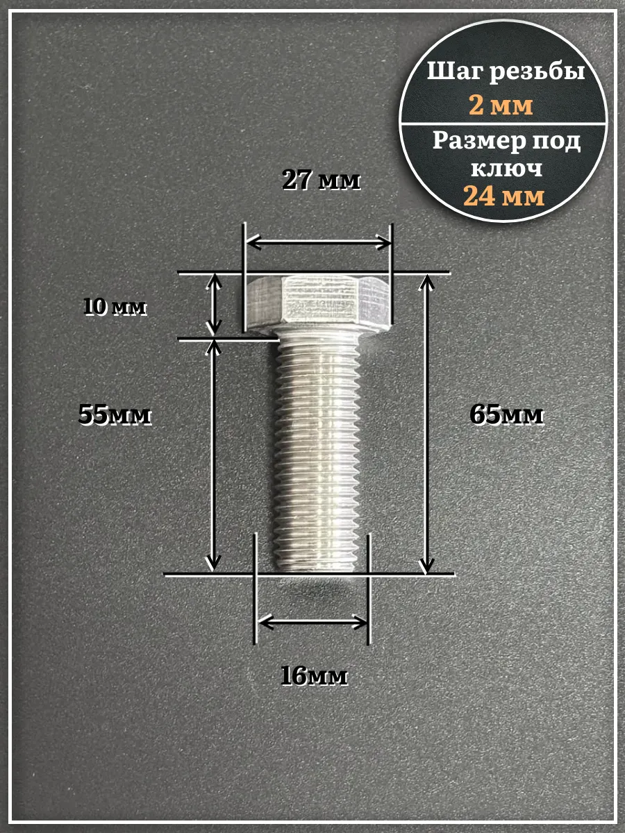 Болт нержавеющий М16х55 А2 DIN933, 4 шт.