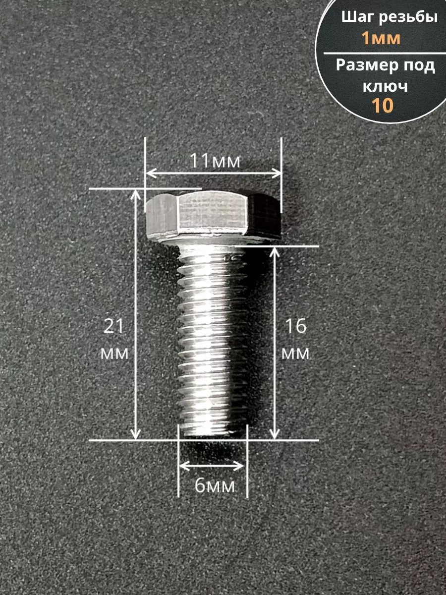 | Болт нержавеющий 6х16 мм DIN933 10шт | АС1300601693D07 | 1 шт. |