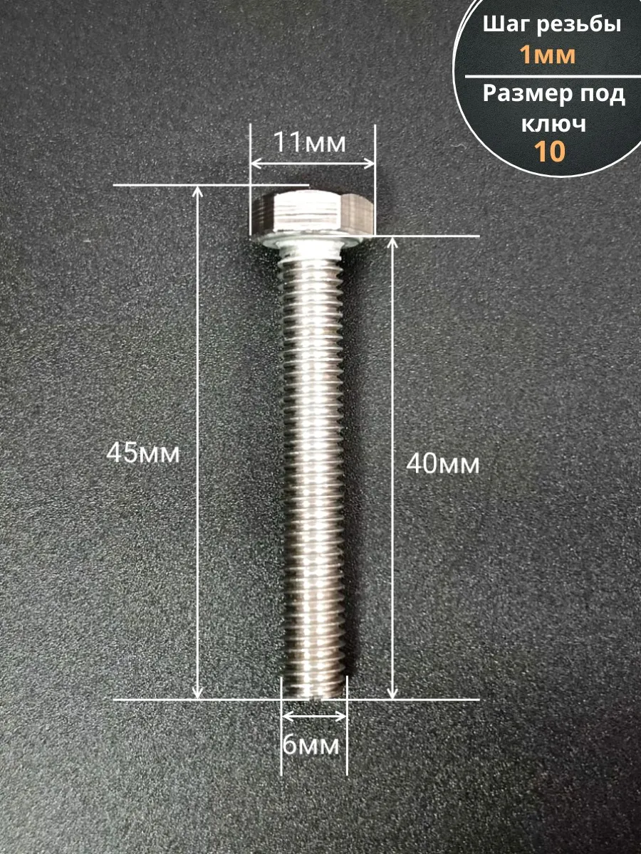 | Болт нержавеющий 6х40 мм DIN933 10шт | АС1300604093G07 | 1 шт. |