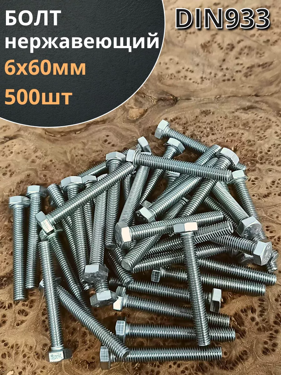 Болт нержавеющий 6х60 мм DIN933 500шт