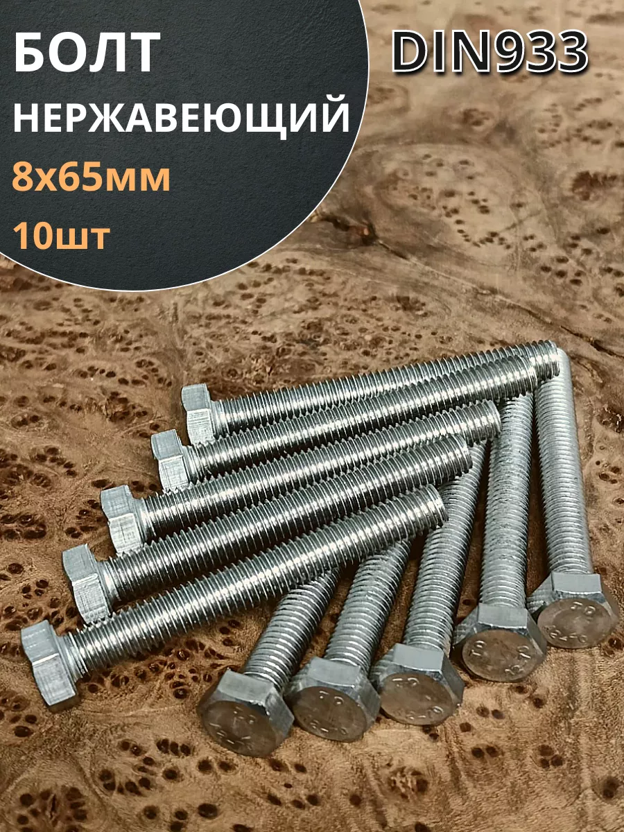 Болт нержавеющий 8х65 мм DIN933 10шт