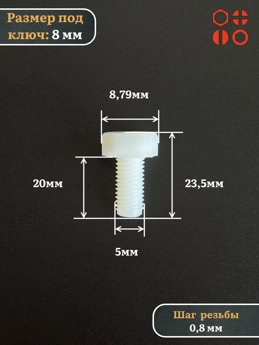 Болт полиамидный 5х20 мм DIN 933 (пластик), 20 шт.