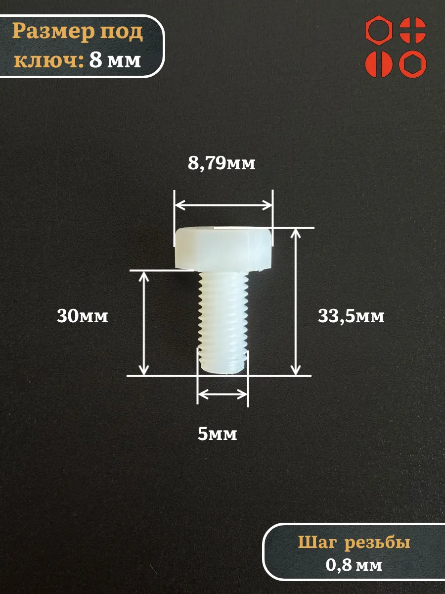 | Болт полиамидный 5х30 мм DIN 933 (пластик), 10 шт. | бп530933ф10 | 1 шт. |