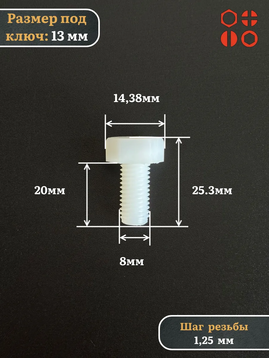 | Болт полиамидный 8х20 мм DIN 933 (пластик), 20 шт. | бп820933ф20 | 1 шт. |