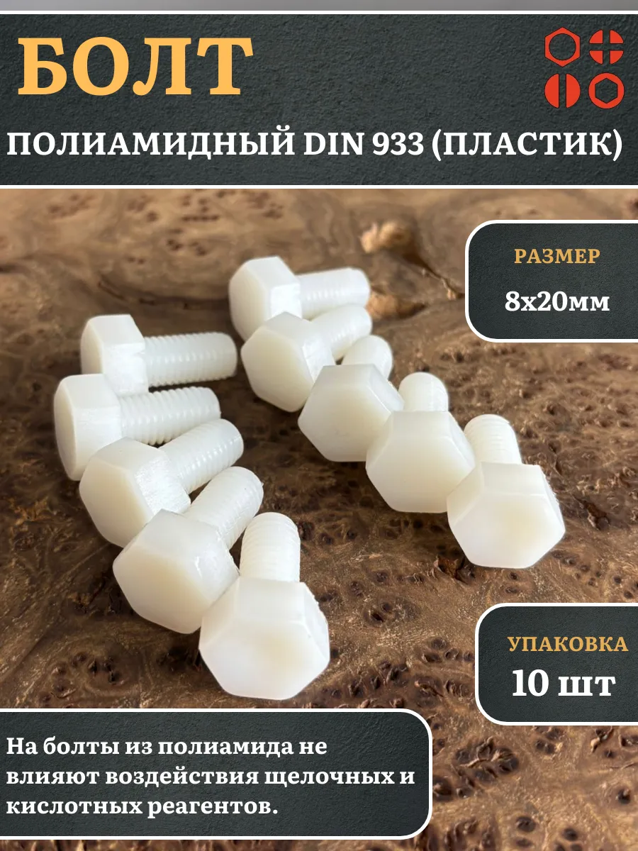 Болт полиамидный 8х20 мм DIN 933 (пластик), 10 шт.
