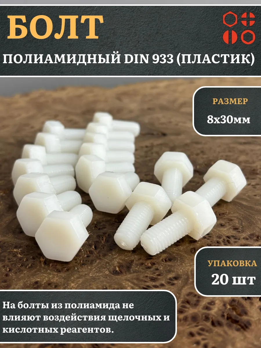 Болт полиамидный 8х30 мм DIN 933 (пластик), 20 шт.