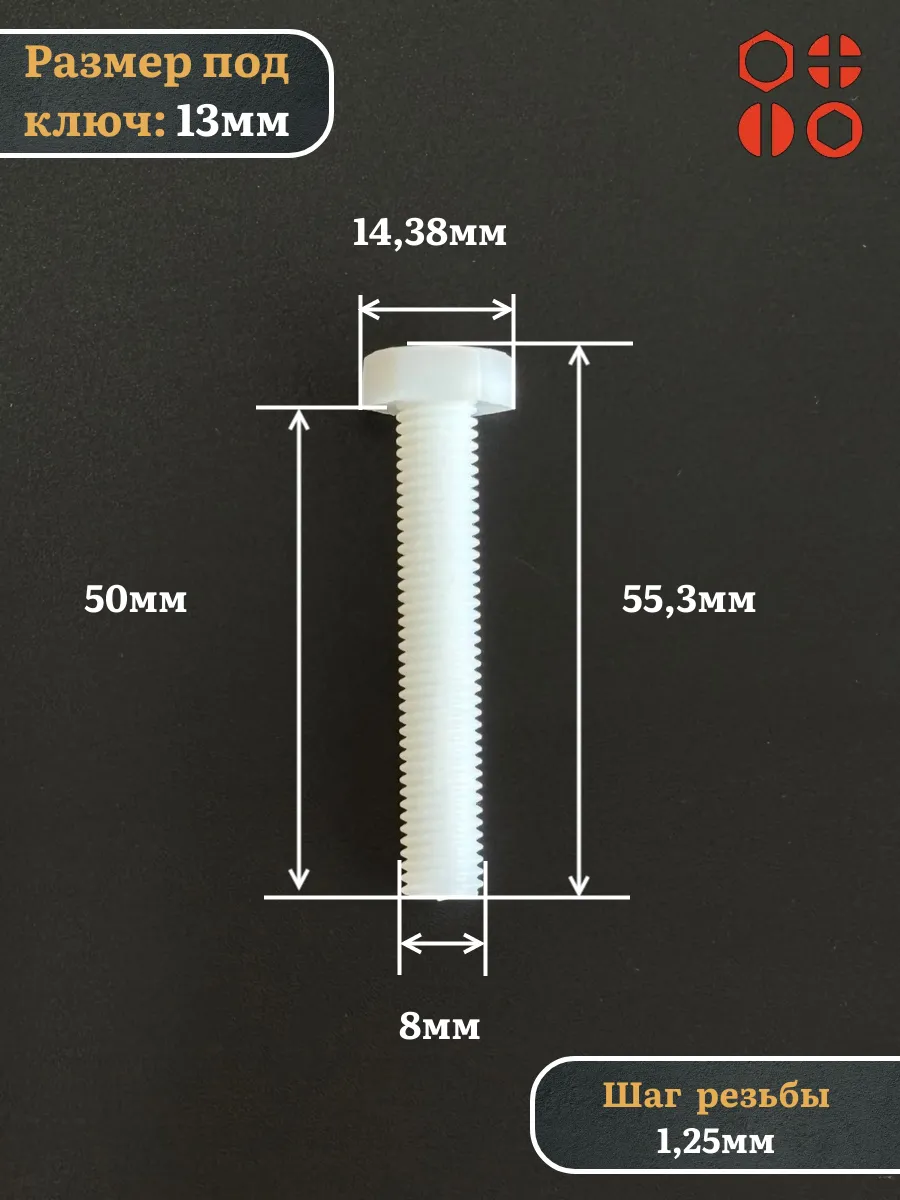 | Болт полиамидный 8х50 мм DIN 933 (пластик), 50 шт. | бп850933ф50 | 1 шт. |