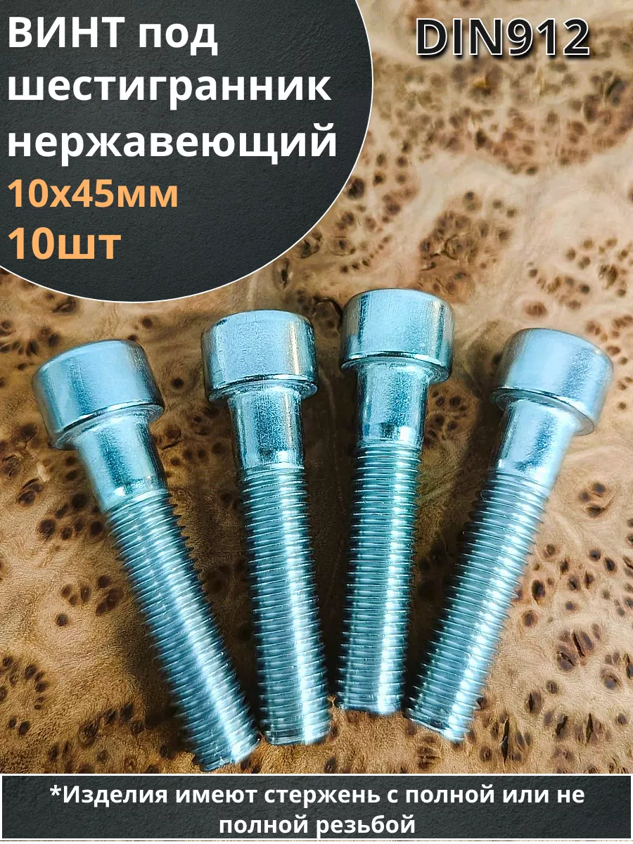 Винт нержавеющий шестигранник М10х45, DIN912 ,10 шт