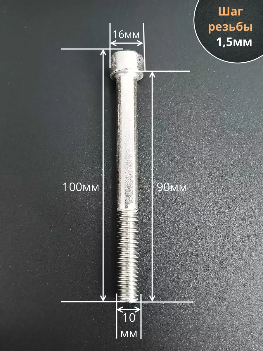 Винт нержавеющий шестигранник М10х90, DIN912 , 10 шт