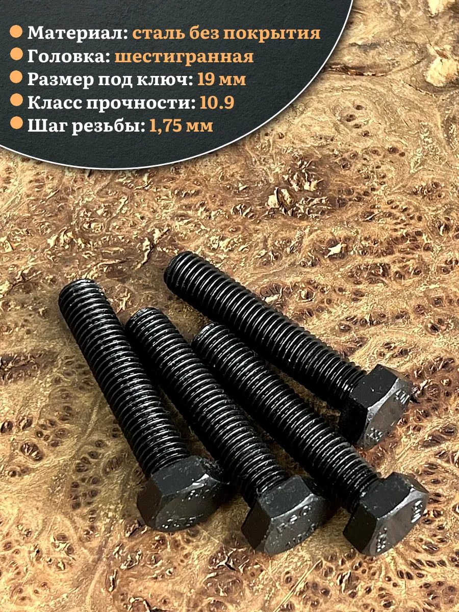 Болт высокопрочный чёрный 12х55 мм, к.п.10.9 DIN933,4 шт.