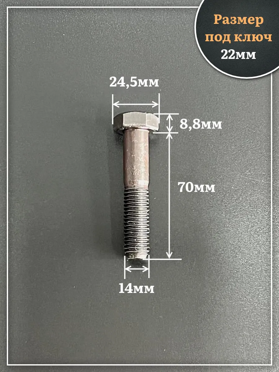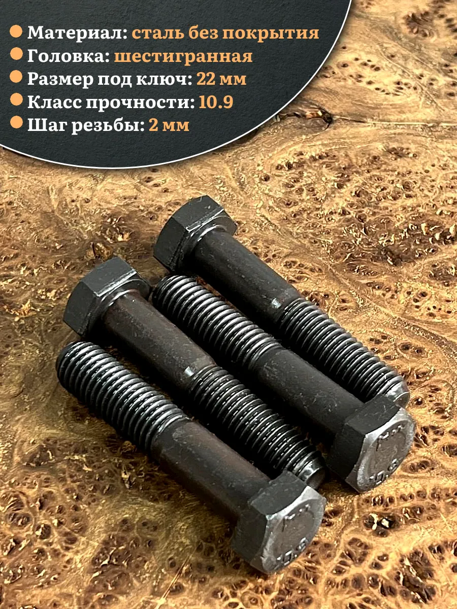 Болт высокопрочный чёрный 14х70 мм, к.п.10.9 DIN931, 4 шт.