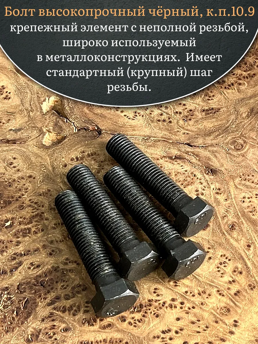 Болт высокопрочный чёрный 16х70 мм, к.п.10.9 DIN931, 4 шт.